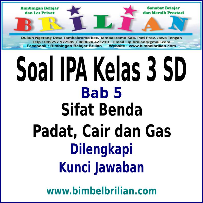 Soal IPA Kelas 3 SD Bab 5 Sifat Benda Padat, Cair dan Gas Dan Kunci Jawaban