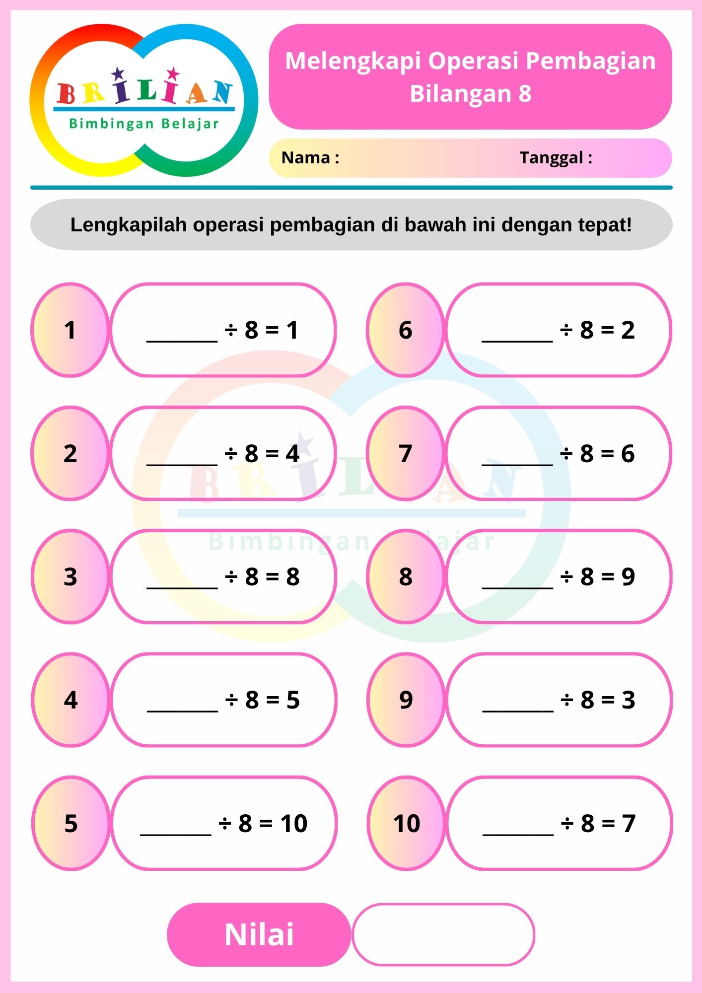 Keterangan = Pembagian Bilangan 8 (4 Lembar)