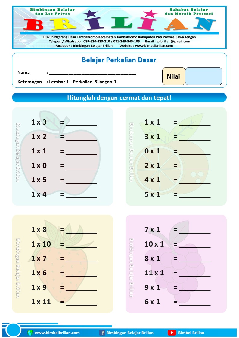 => Kumpulan Soal Isian Perkalian Warna-Warni (Bilangan 1 sampai 10)