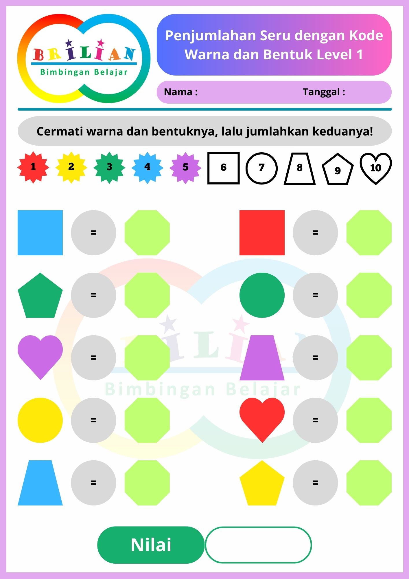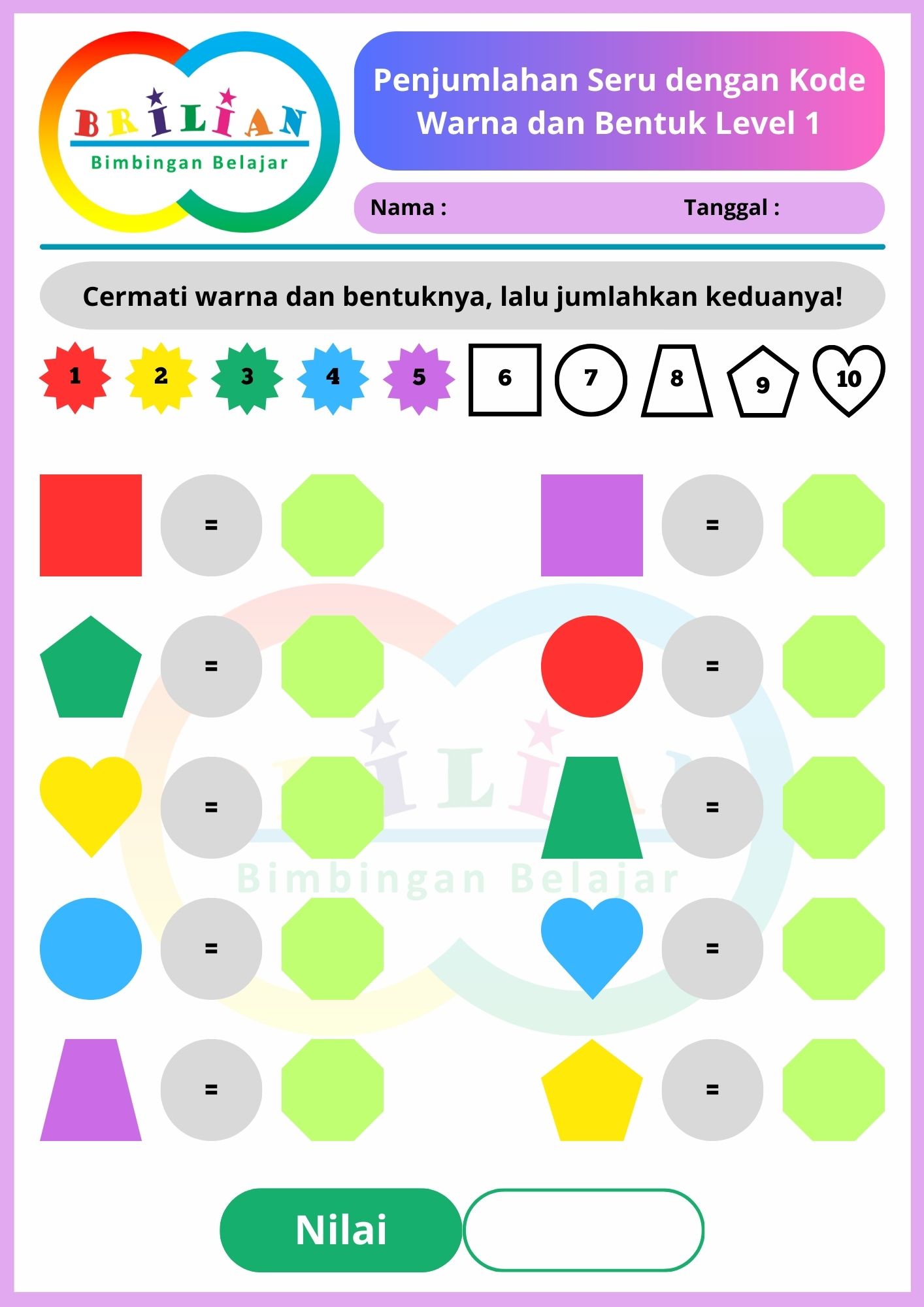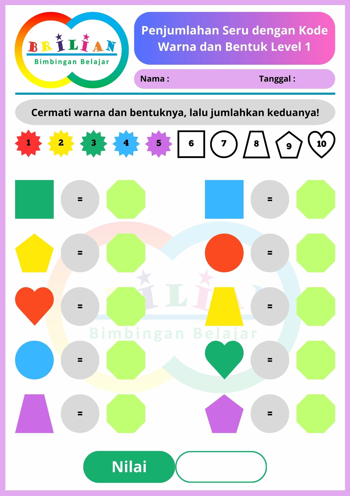 Penjumlahan dengan Kode Warna dan Bentuk Level 1