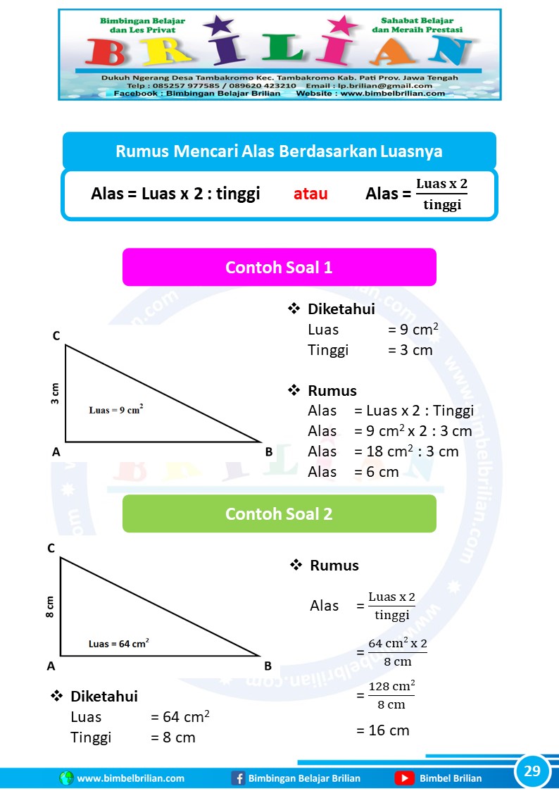 => Download Rumus Cara Mencari Alas Segitiga Siku-Siku yang Diketahui Luas dan Tingginya