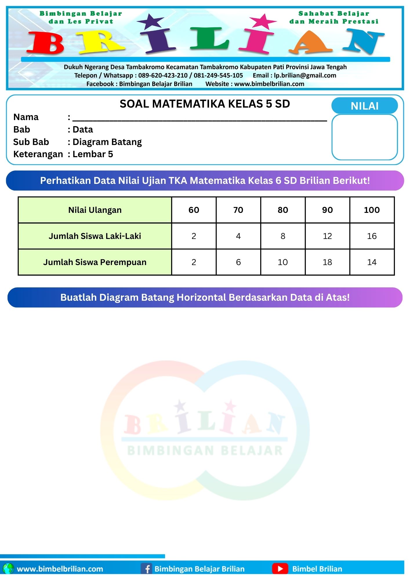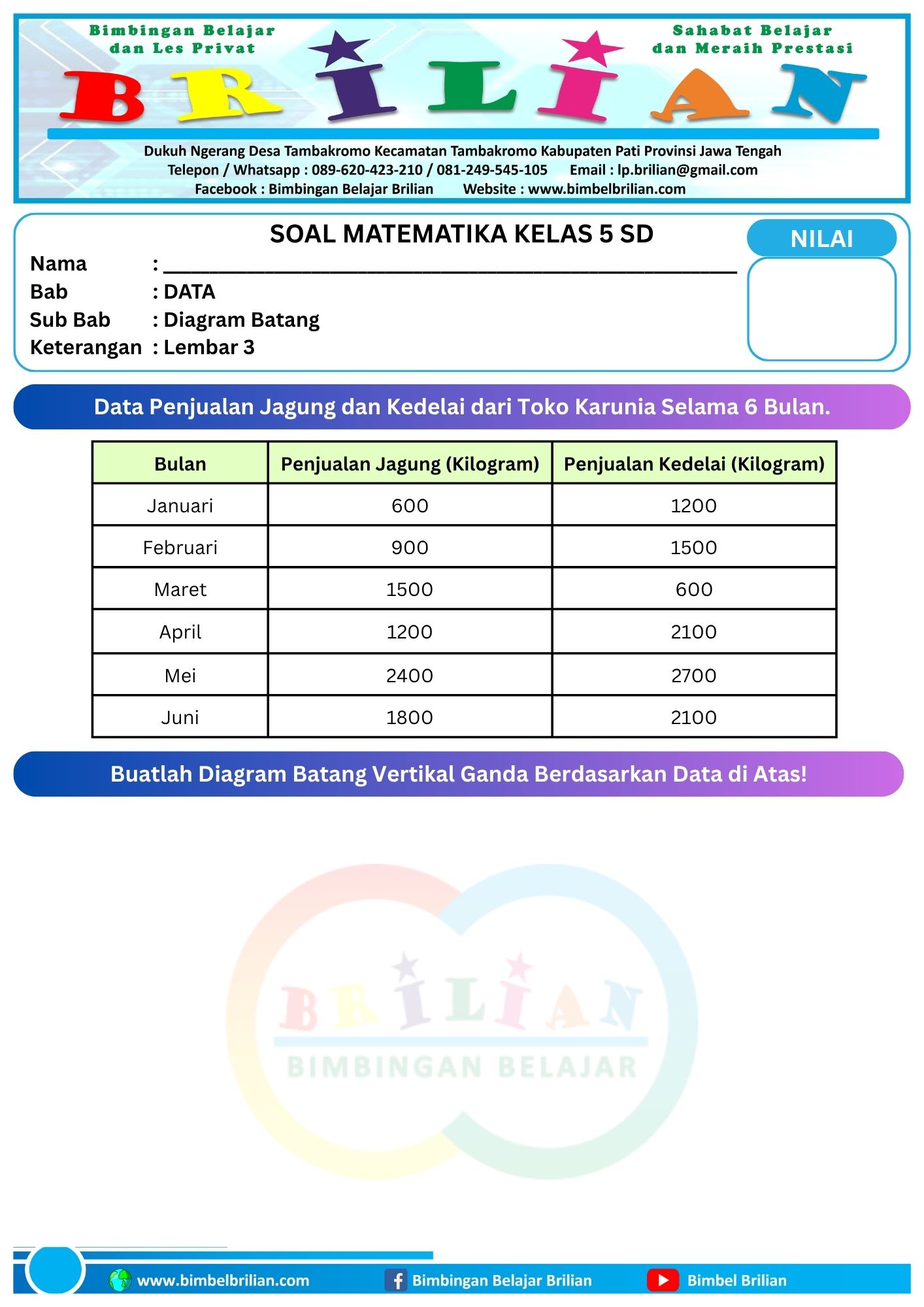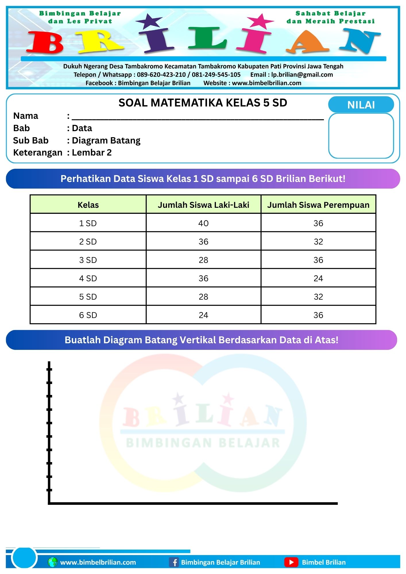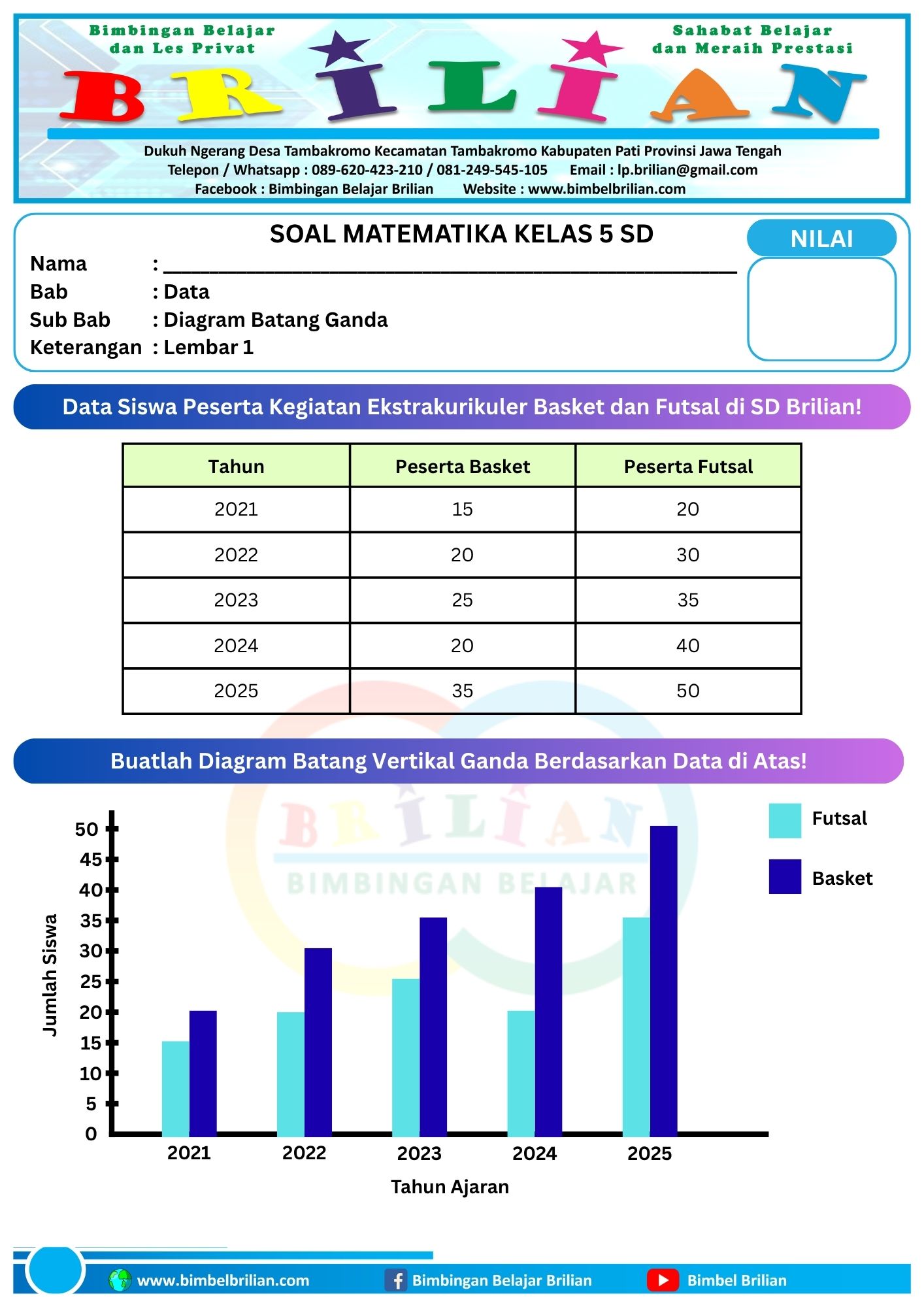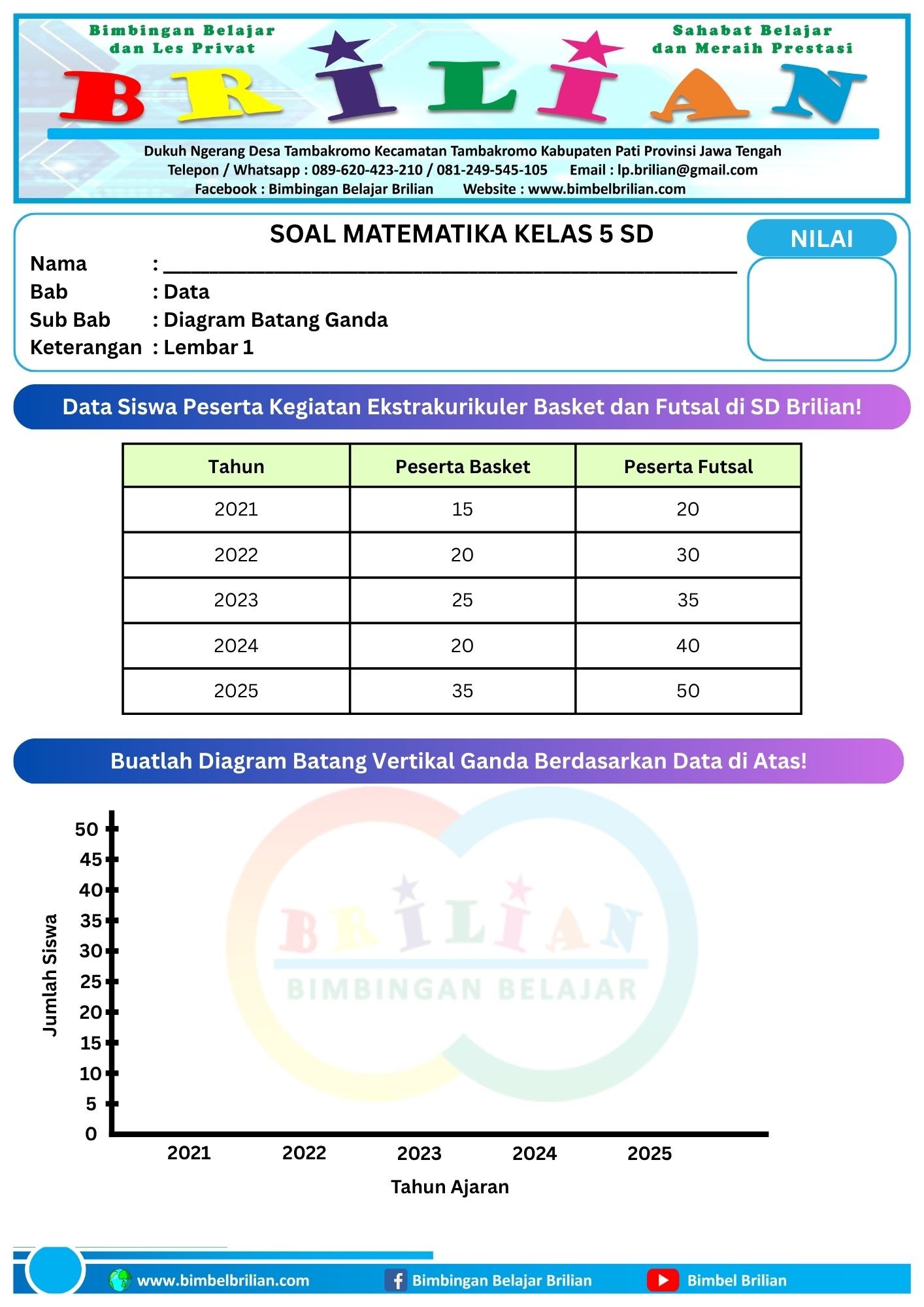 Soal Membuat Diagram Batang Ganda Horizontal dan Vertikal Lembar 1