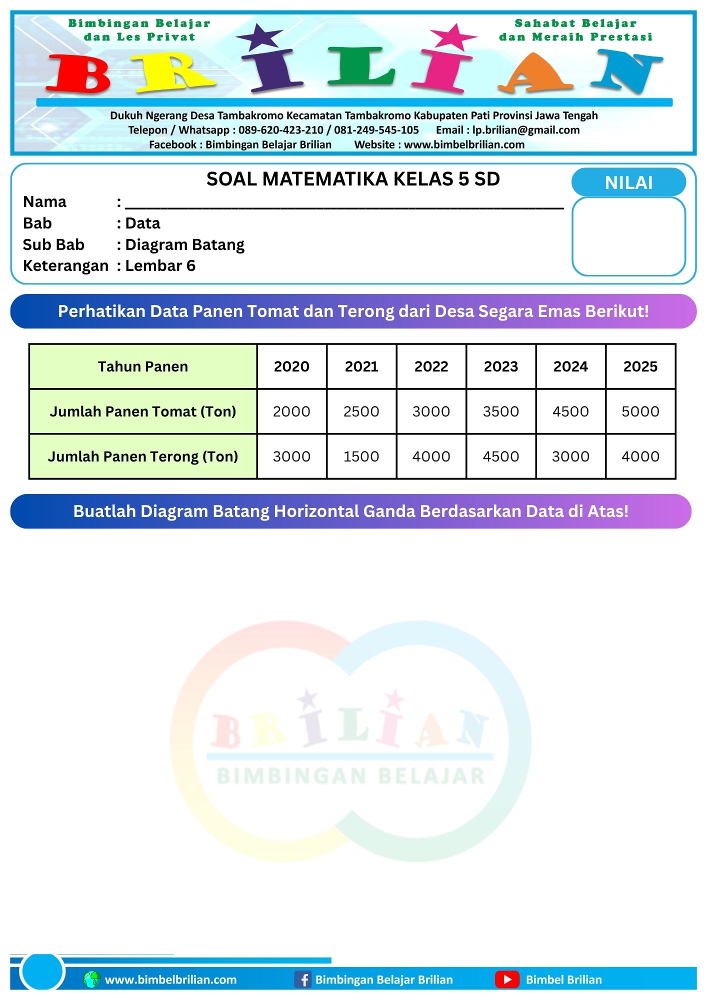 Soal Membuat Diagram Batang Ganda Horizontal dan Vertikal Lembar 6