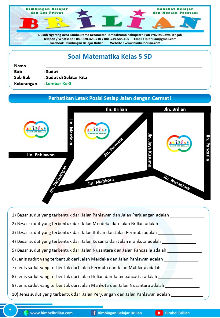 Soal Lembar Ke-3 Soal Bab Sudut di Sekitar Kita (Sudut pada Jalan, Sudut pada Benda, dan Sudut antar Posisi Benda