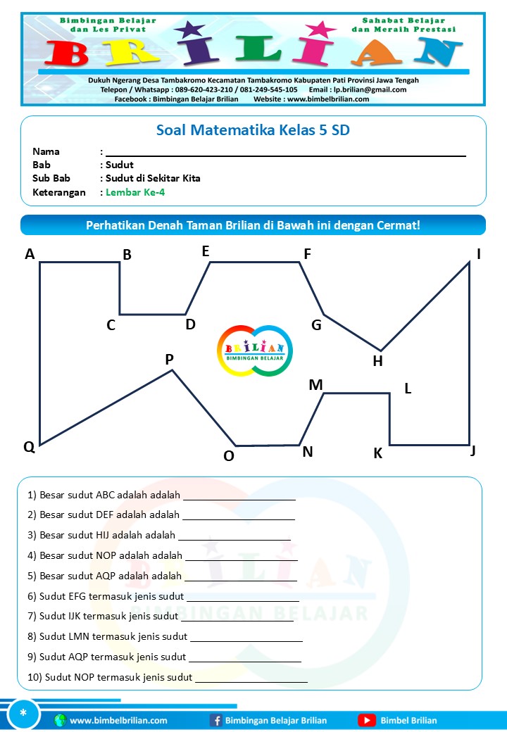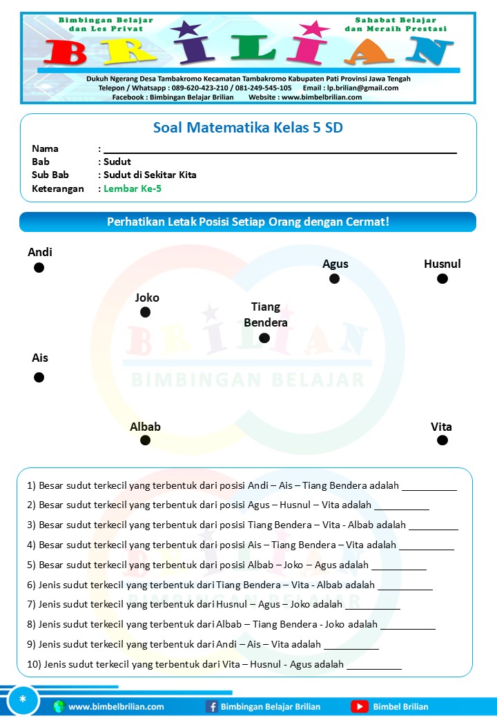 Soal Lembar Ke-5 Soal Bab Sudut di Sekitar Kita (Sudut pada Jalan, Sudut pada Benda, dan Sudut antar Posisi Benda