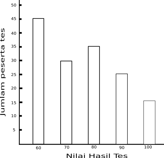 Diagram di atas menunjukkan hasil tes seleksi masuk SMAN 1 Sukarukun. Dari data di atas, hitunglah :