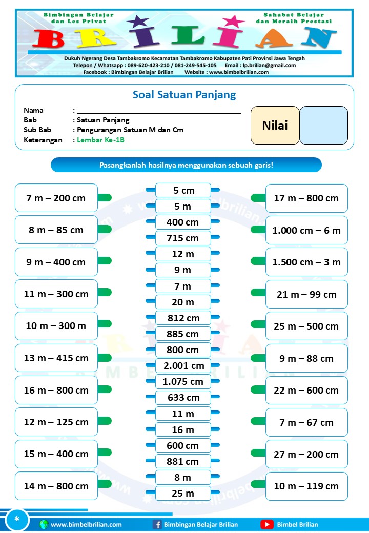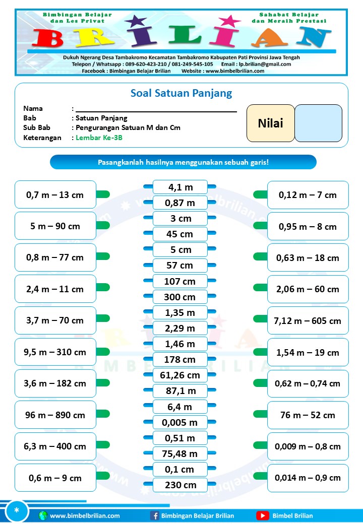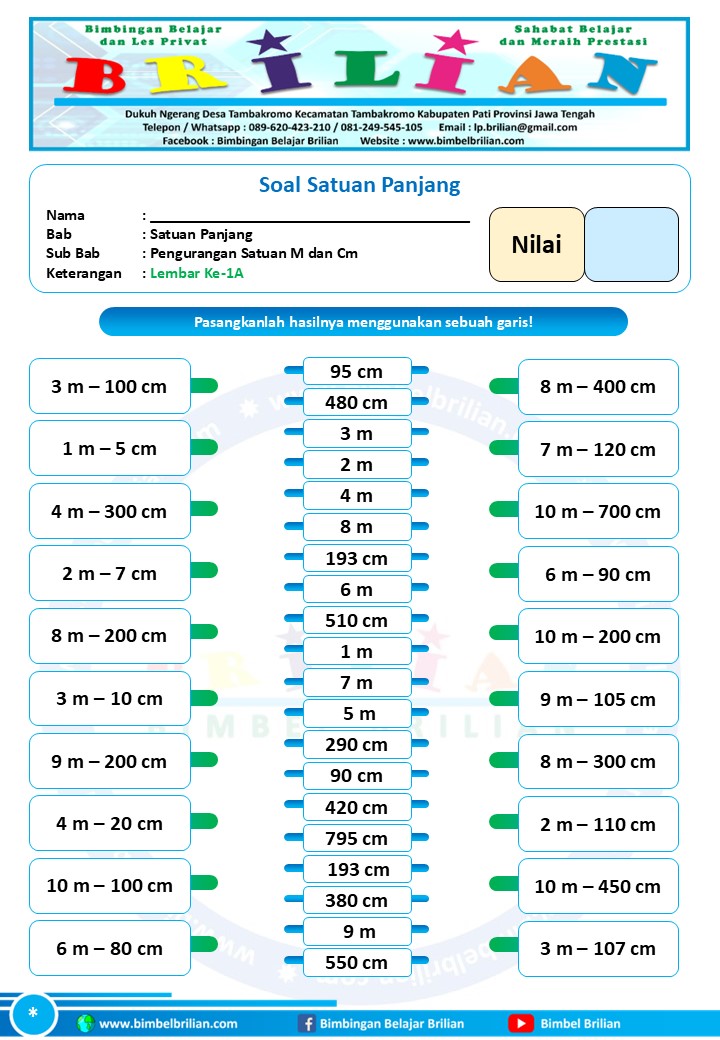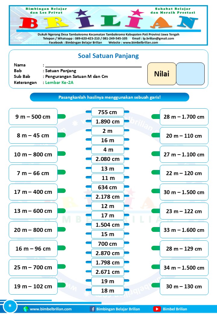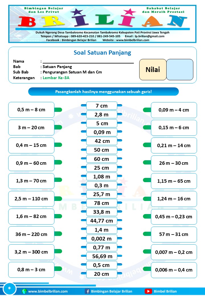 => Download Soal Math Matching Game Satuan Panjang – Pengurangan Satuan Panjang Meter dan Centimeter Dilengkapi Kunci Jawaban