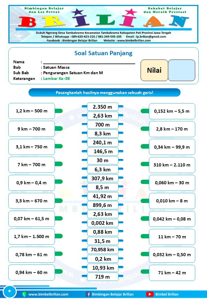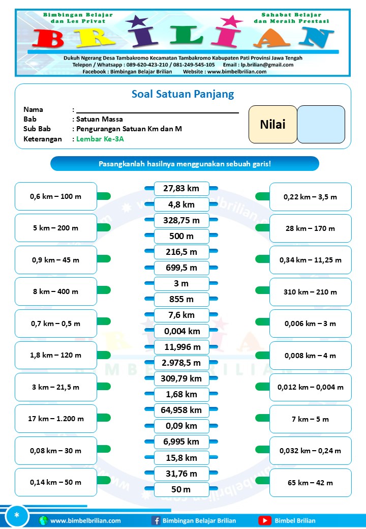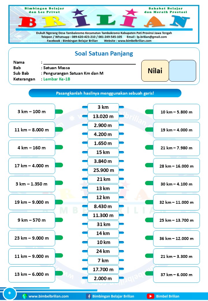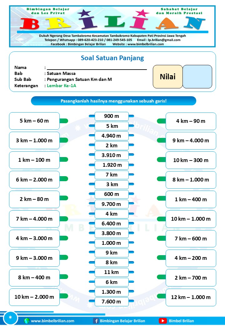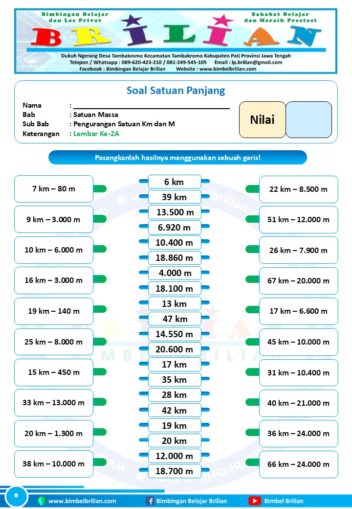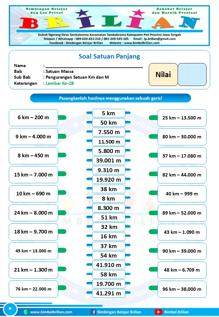 => Download Soal Math Matching Game Satuan Panjang – Pengurangan Satuan Panjang Kilometer dan Meter Dilengkapi Kunci Jawaban