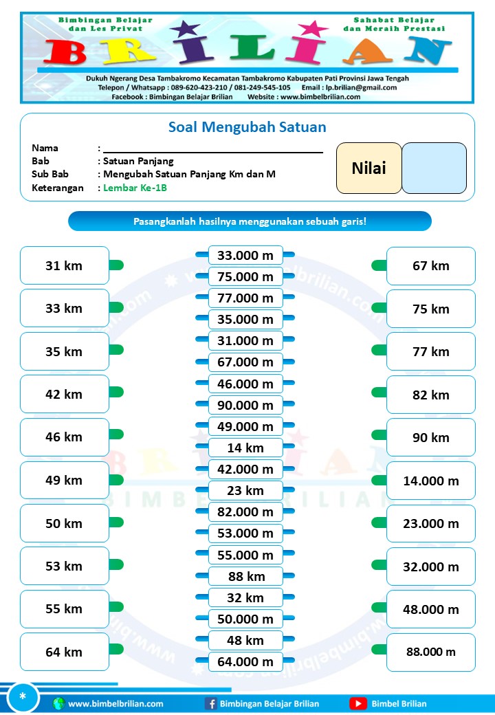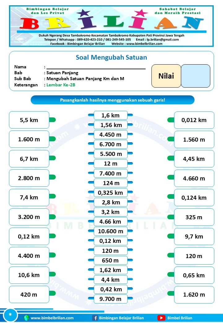 => Download Soal Math Matching Game Satuan Panjang – Perubahan Satuan Panjang Kilometer dan Meter Dilengkapi Kunci Jawaban