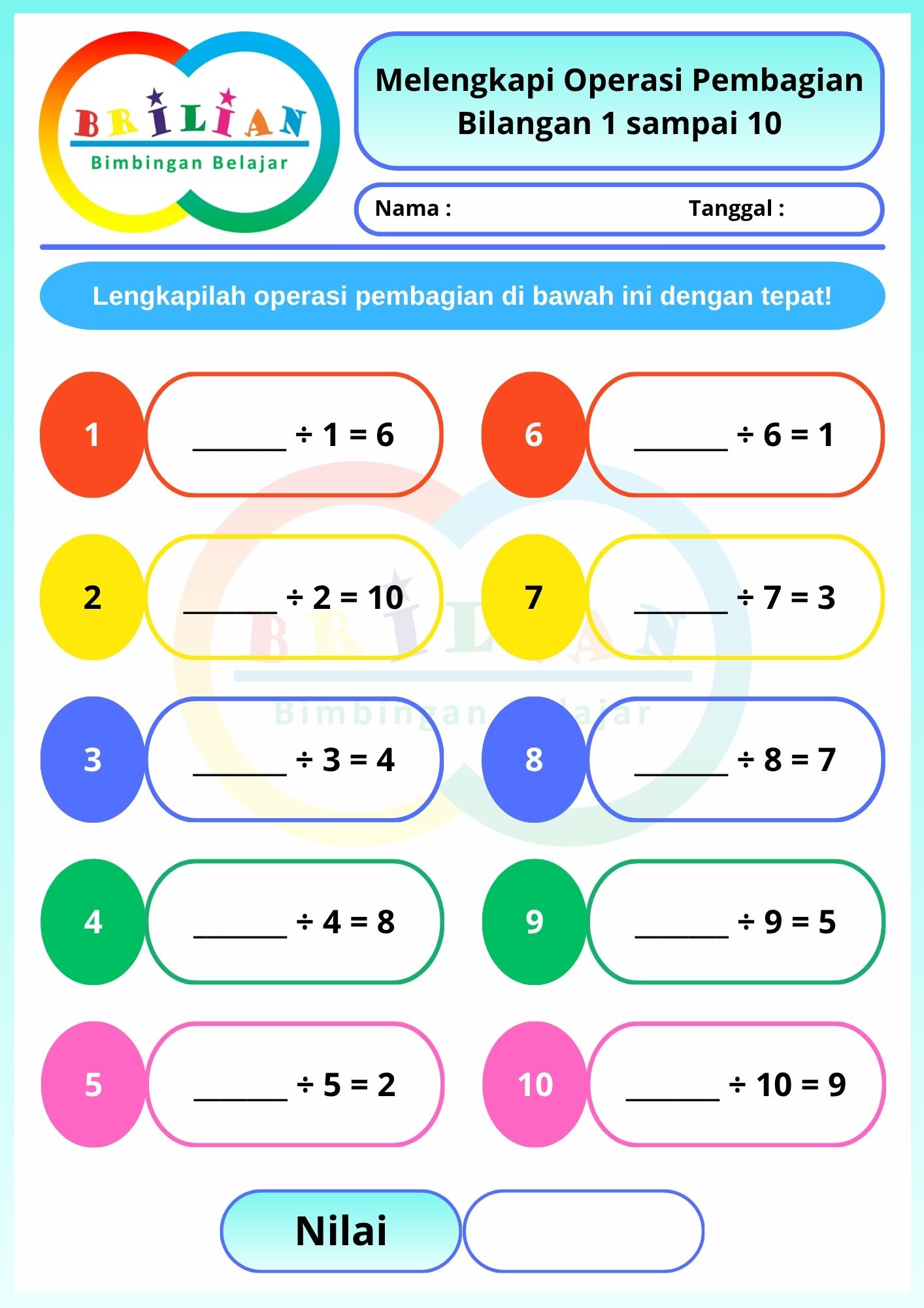 Keterangan = Pembagian Bilangan 1 sampain 10 (4 Lembar)