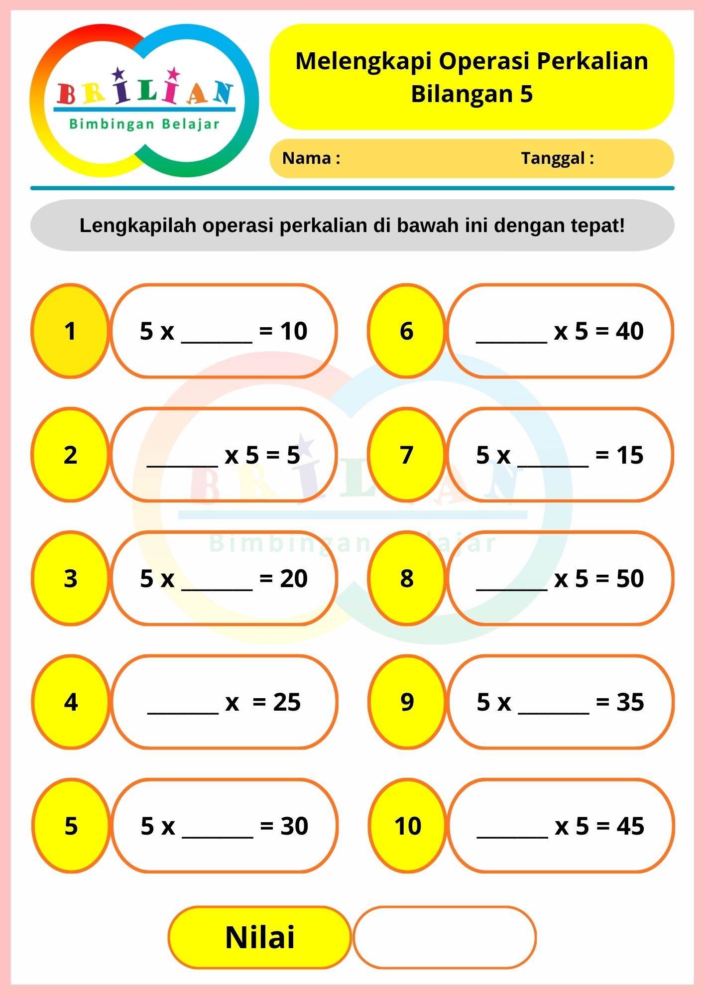 => Kumpulan Soal Melengkapi Operasi Perkalian (44 Lembar)
