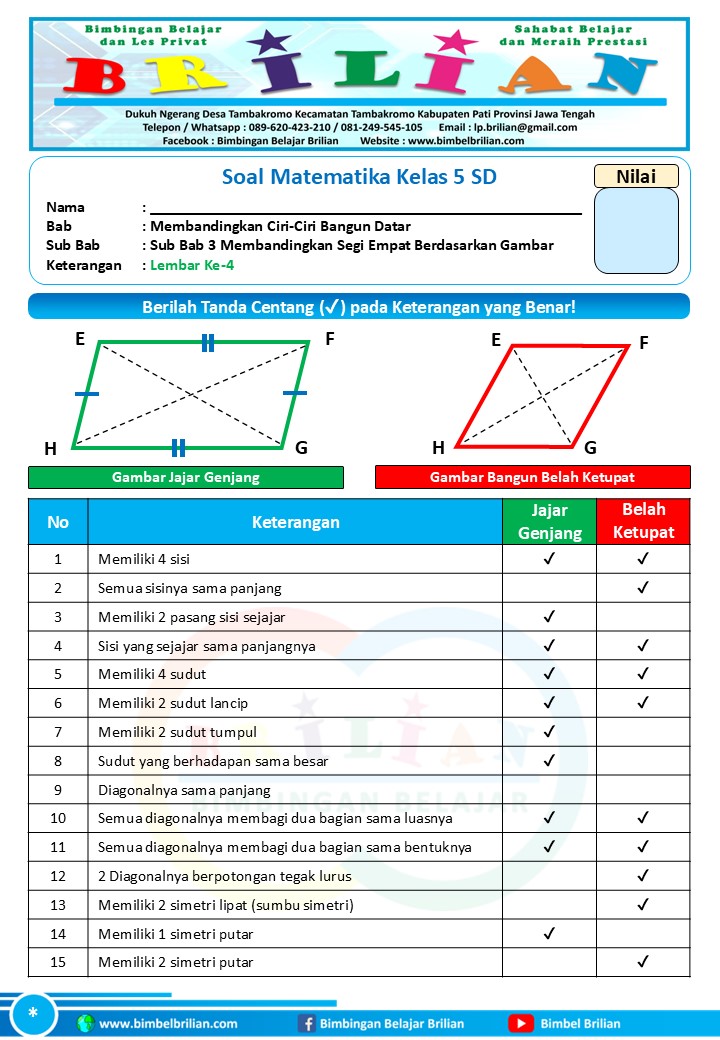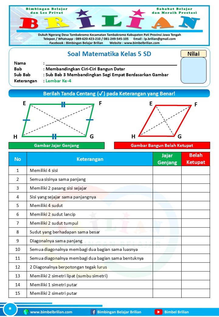 => Soal Membandingkan Segi Empat dengan Gambar Kelas 5 SD dan Kunci Jawaban