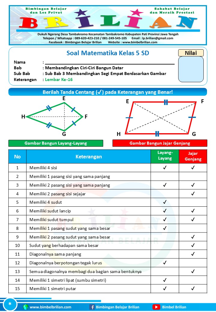 => Soal Membandingkan Segi Empat dengan Gambar Kelas 5 SD dan Kunci Jawaban