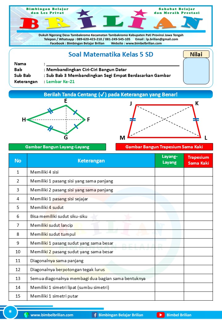 => Soal Membandingkan Segi Empat dengan Gambar Kelas 5 SD dan Kunci Jawaban