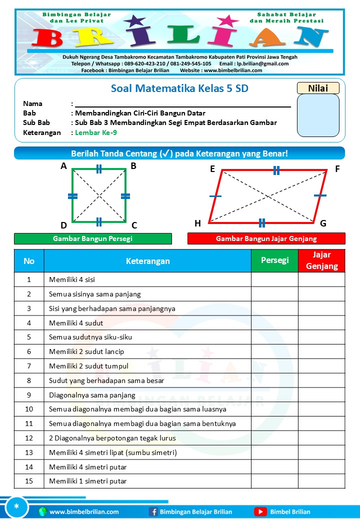 => Soal Membandingkan Segi Empat dengan Gambar Kelas 5 SD dan Kunci Jawaban
