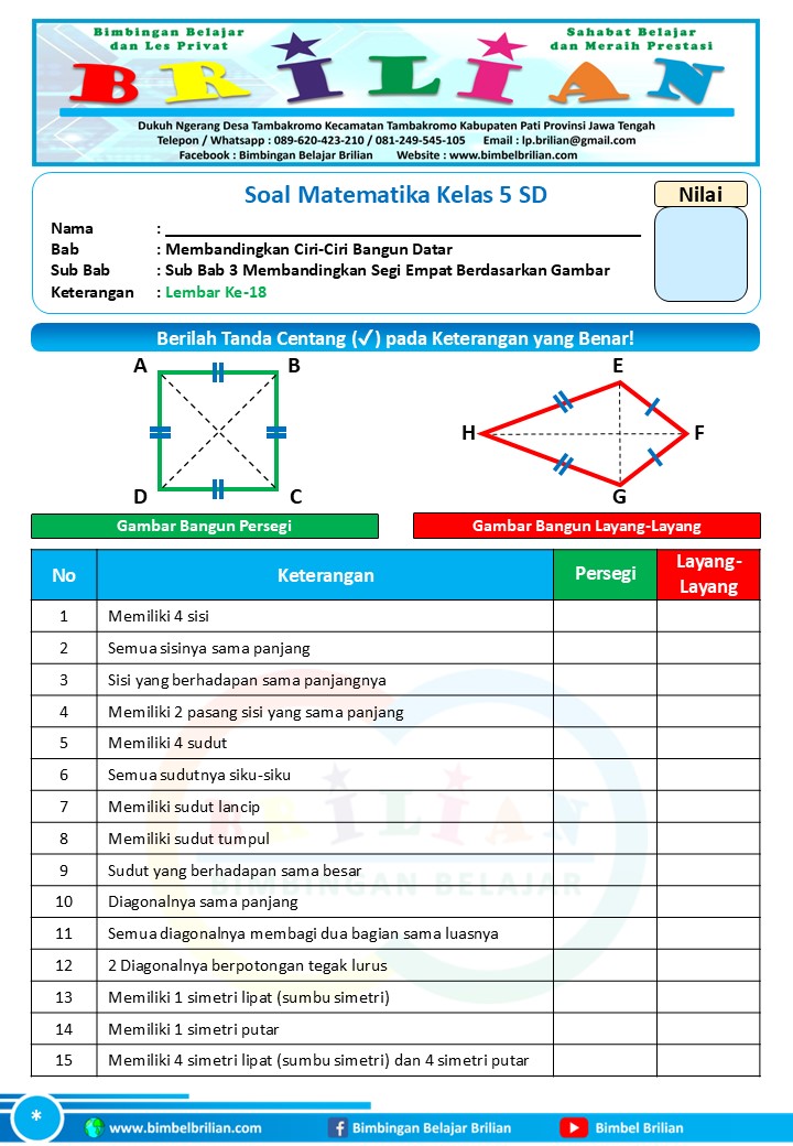 => Soal Membandingkan Segi Empat dengan Gambar Kelas 5 SD dan Kunci Jawaban