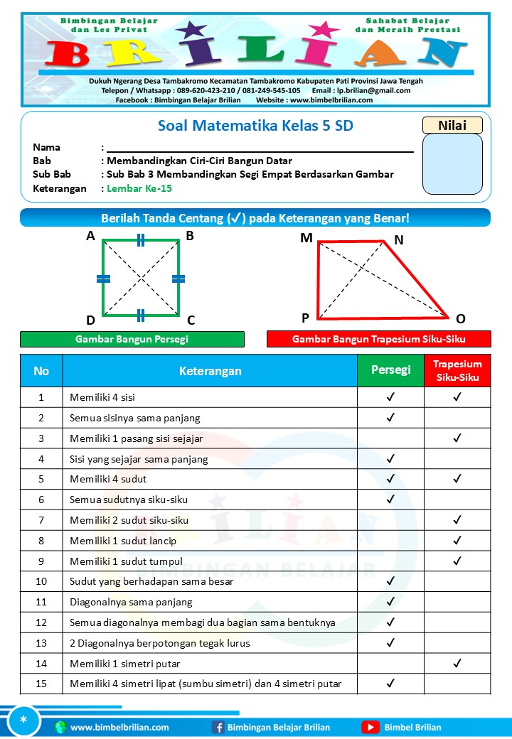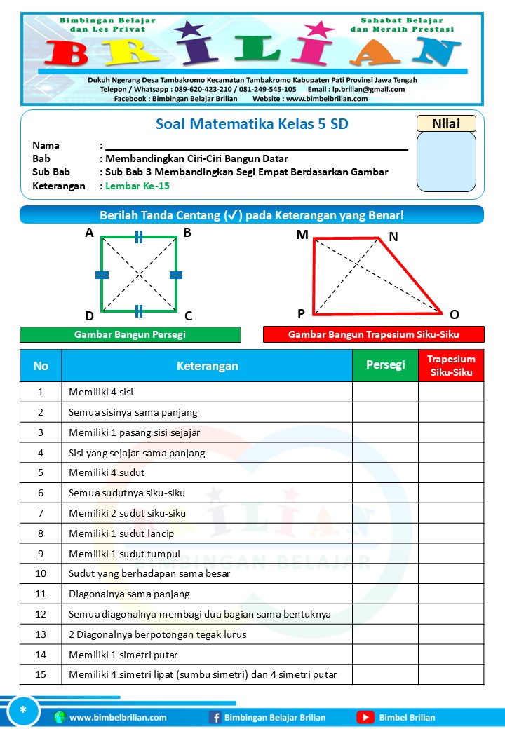 => Soal Membandingkan Segi Empat dengan Gambar Kelas 5 SD dan Kunci Jawaban