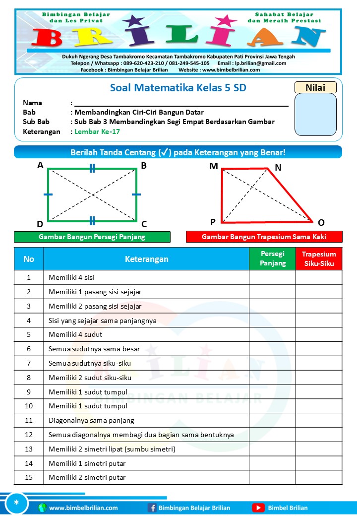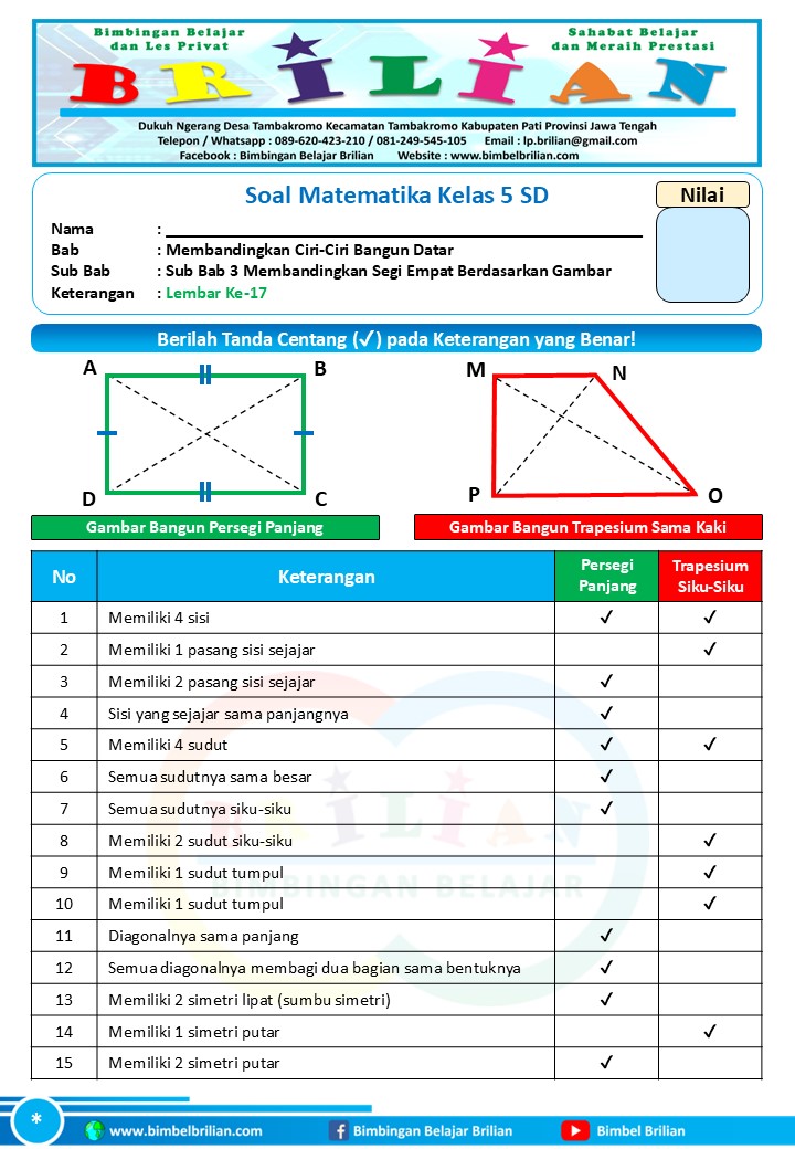 => Soal Membandingkan Segi Empat dengan Gambar Kelas 5 SD dan Kunci Jawaban