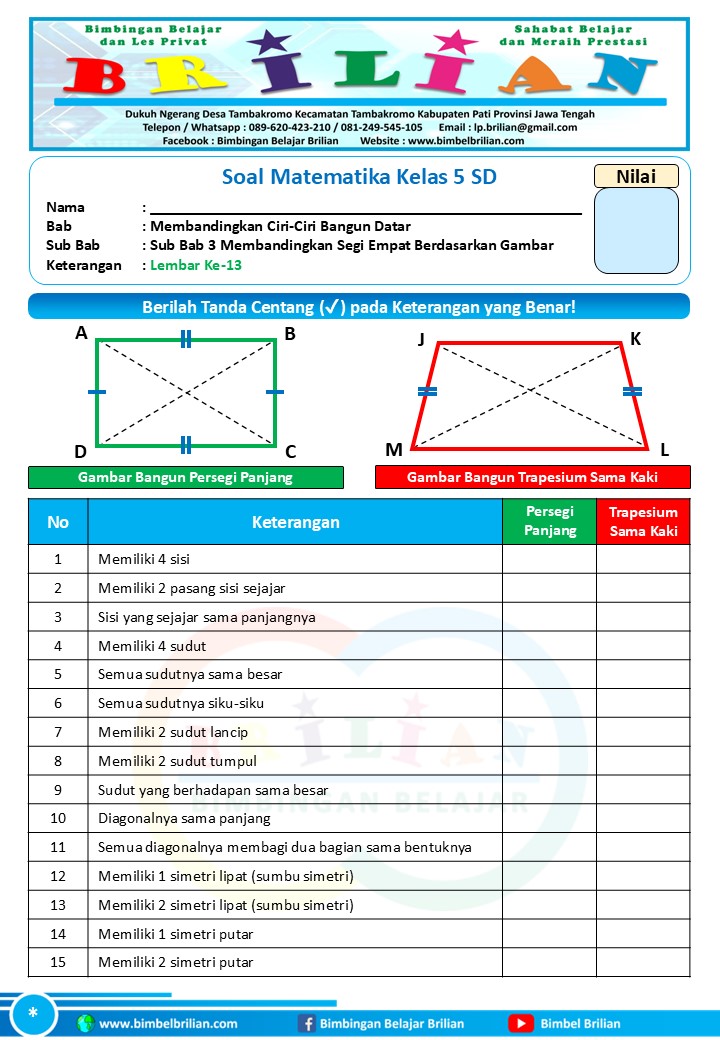 => Soal Membandingkan Segi Empat dengan Gambar Kelas 5 SD dan Kunci Jawaban