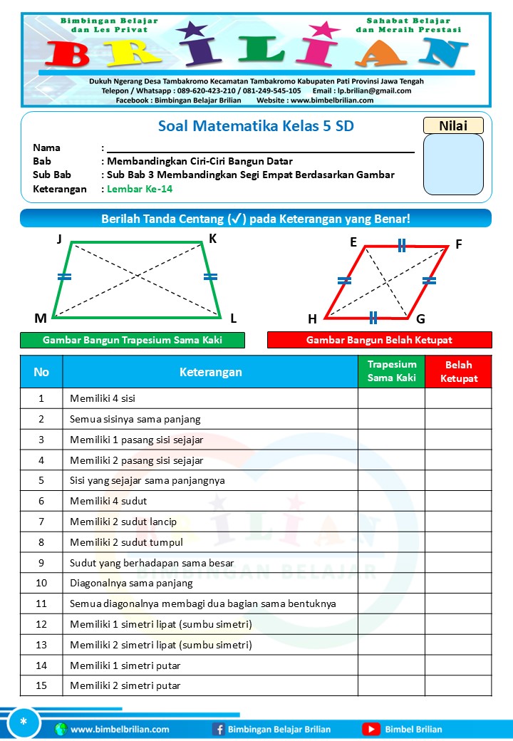 => Soal Membandingkan Segi Empat dengan Gambar Kelas 5 SD dan Kunci Jawaban