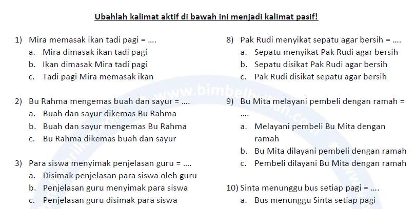 => Kumpulan Soal Mengubah Kalimat Aktif menjadi Pasif