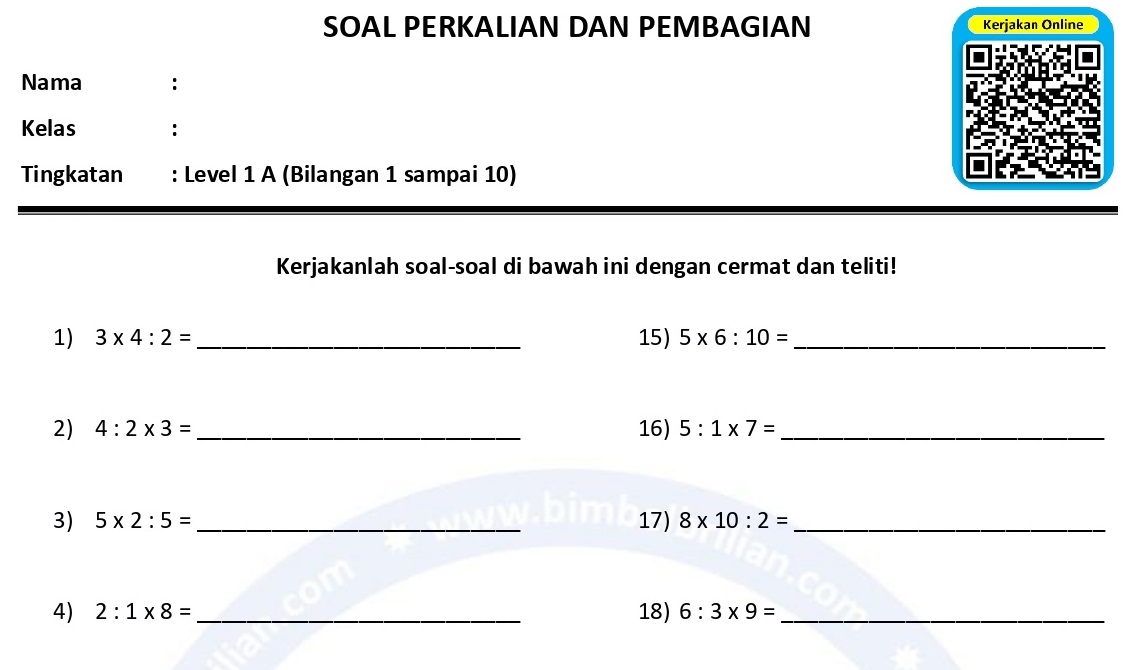 => Download Soal Operasi Hitung Campuran Perkalian dan Pembagian – Versi Isian Level 1A dan Kunci Jawaban
