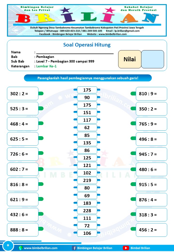 Tipe Soal = Memasangkan Hasil Pembagian dengan Garis