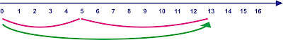 a. Garis bilangan untuk menjumlahkan dua ranting yang diambil Erwin.