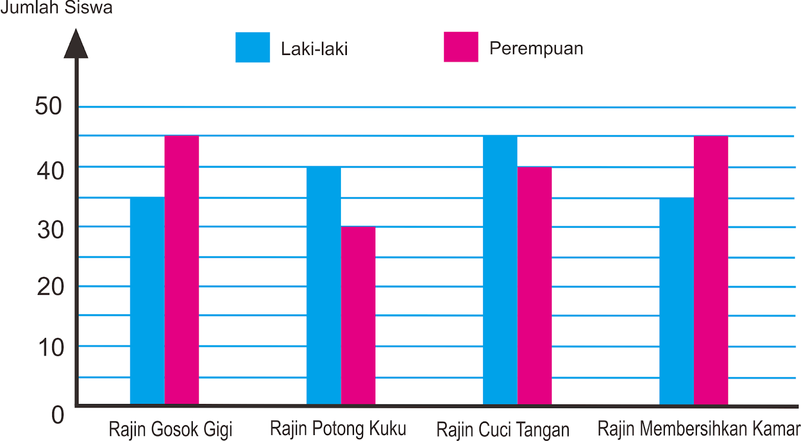 4. Buatlah grafik dari data kegiatan pola hidup bersih dan sehat yang dilakukan siswa kelas 6 SD Brilian Jaya berikut ini!