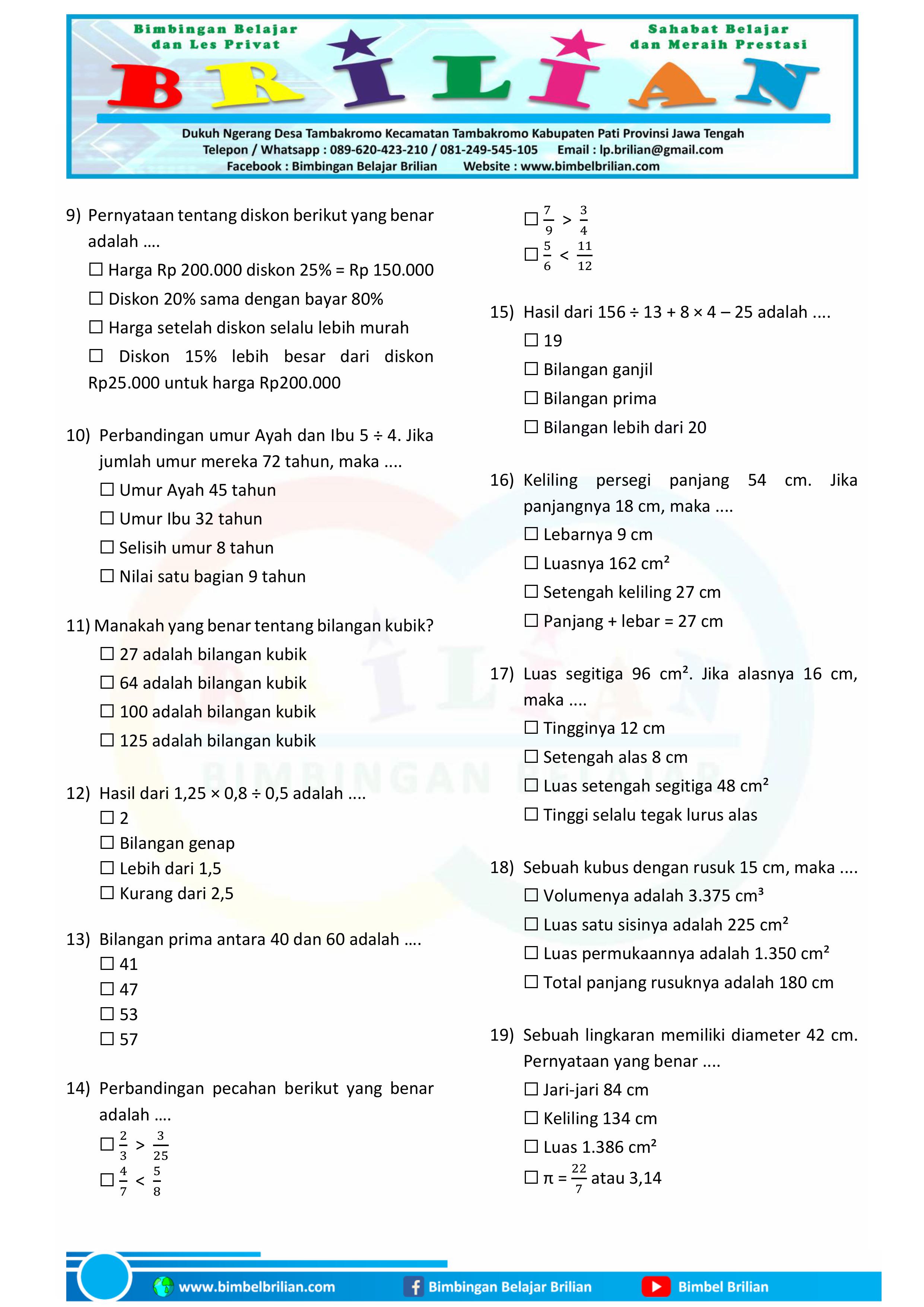 => Kumpulan Soal Matematika Kelas 6 SD Kurikulum Merdeka