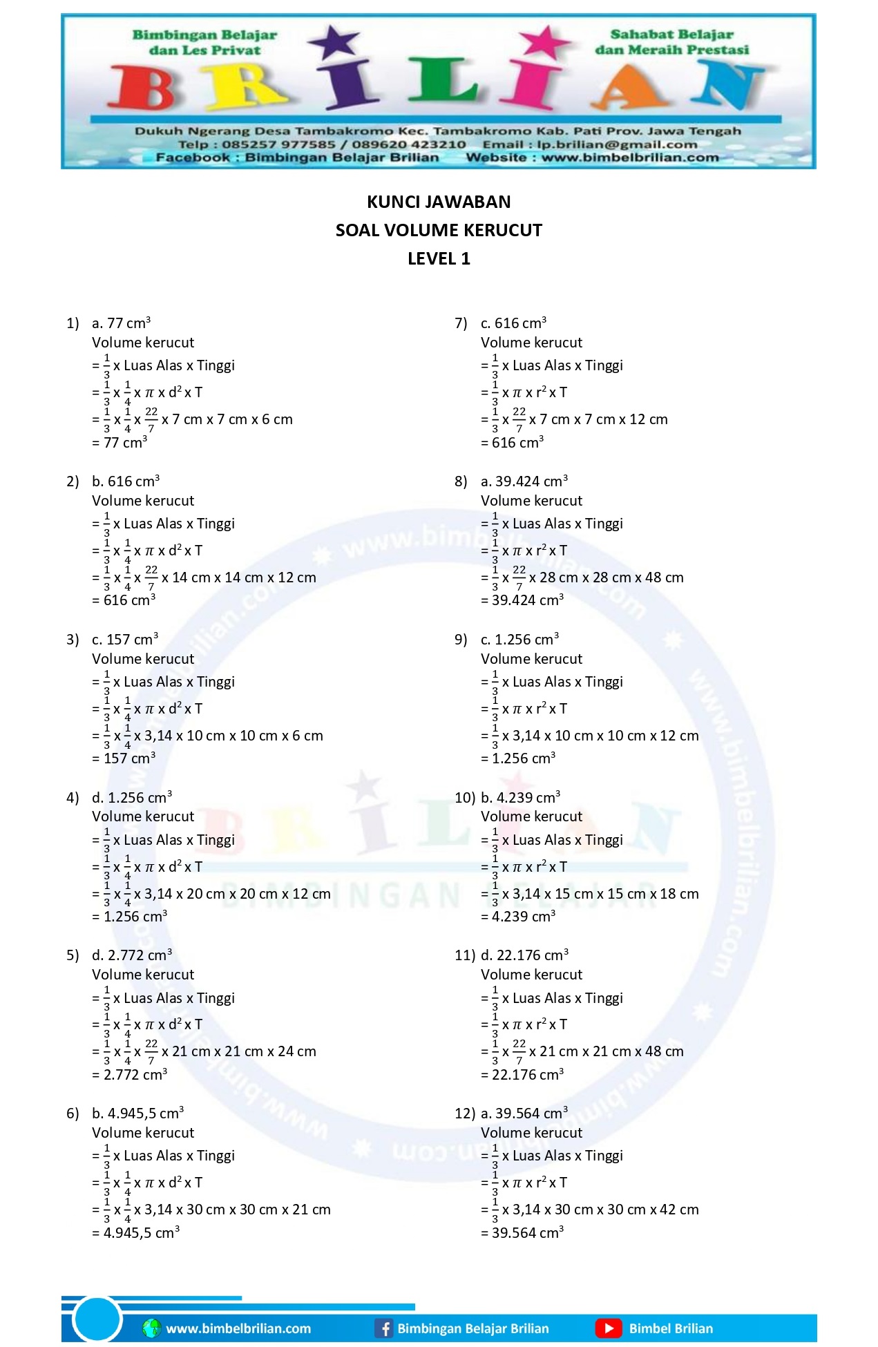 => Download Soal Volume Kerucut Level 1 dan Kunci Jawaban