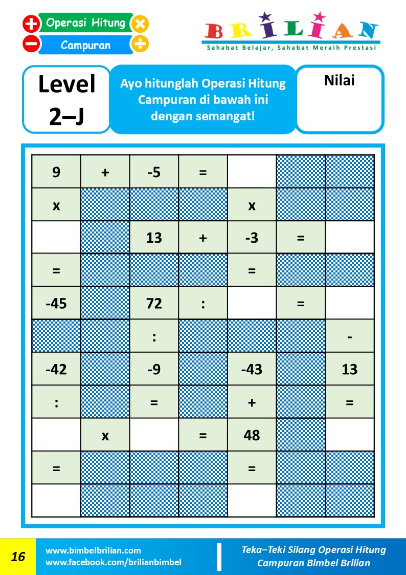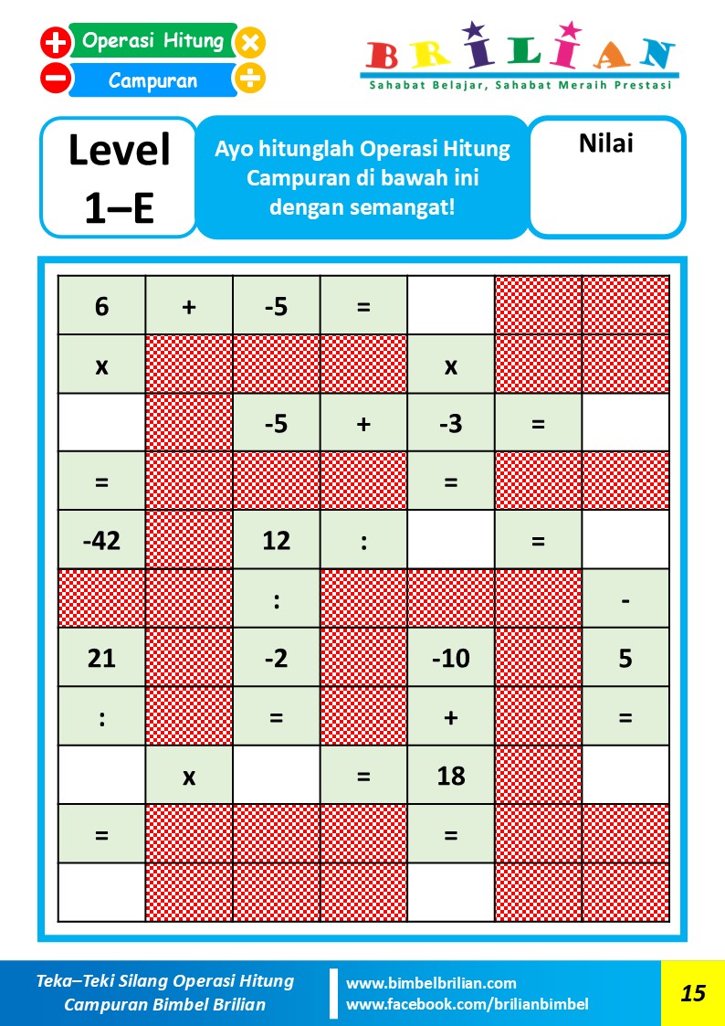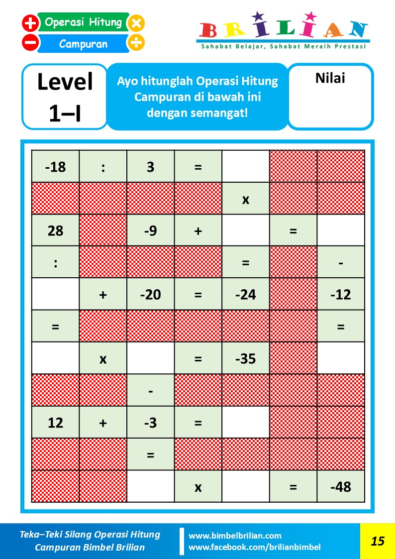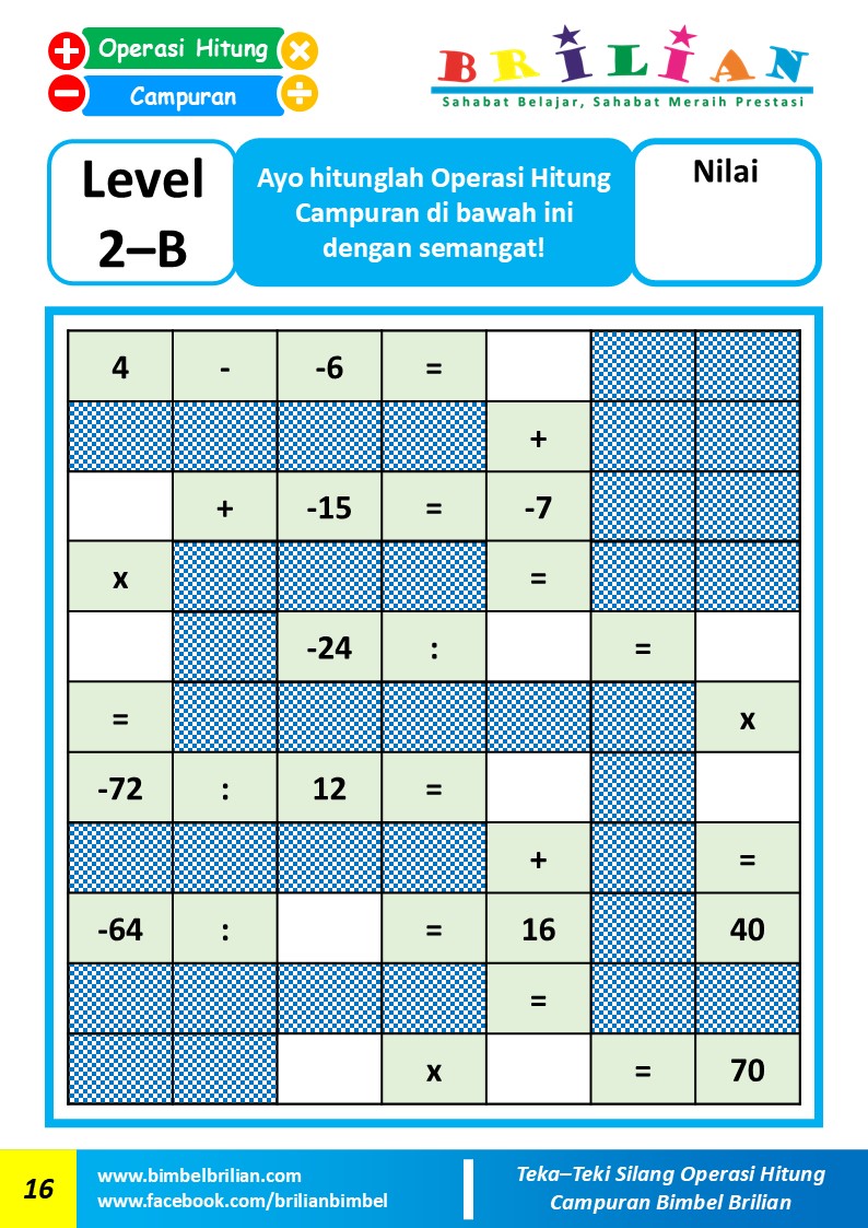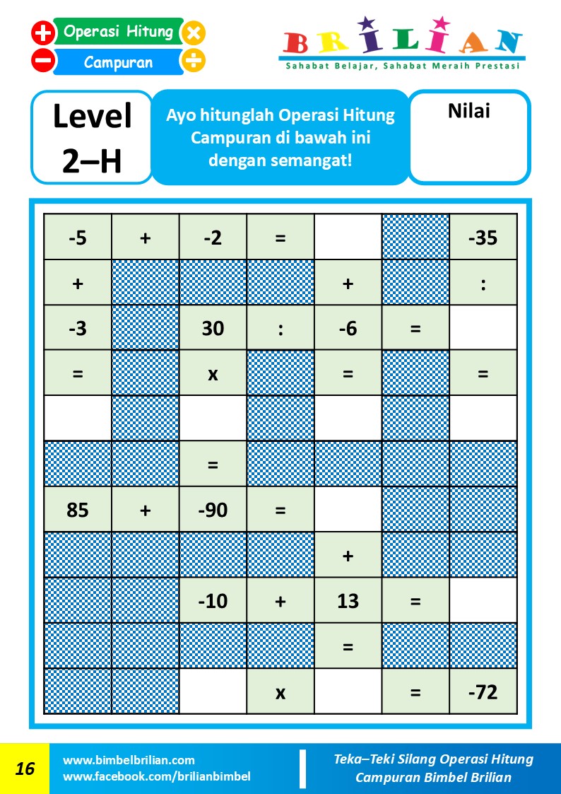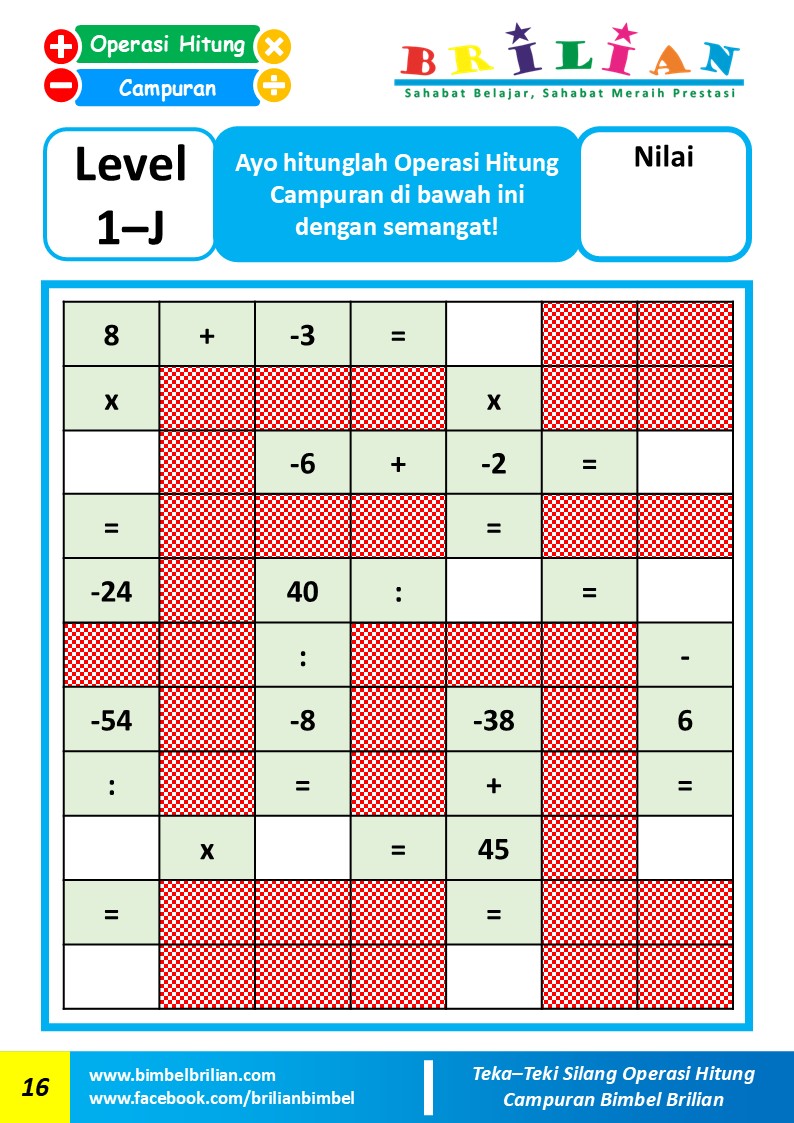 - Teka-Teki Silang Operasi Hitung Campuran Bilangan Bulat Positif dan Negatif