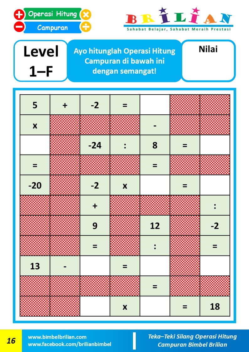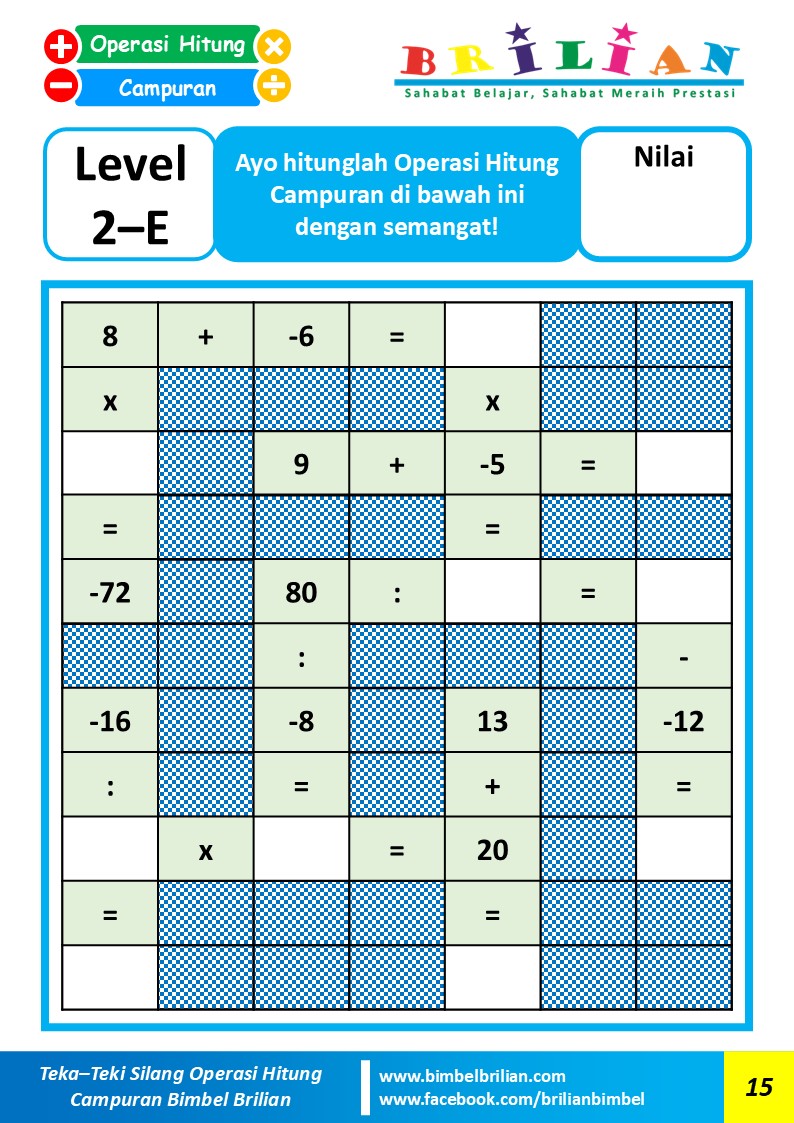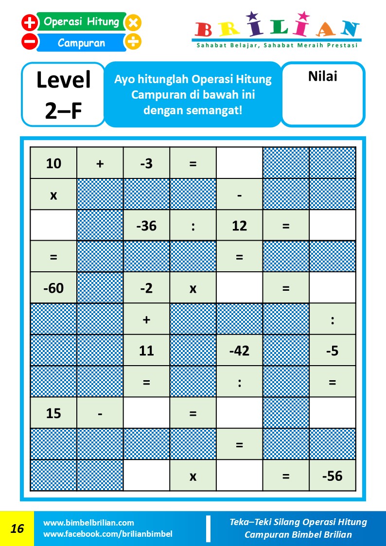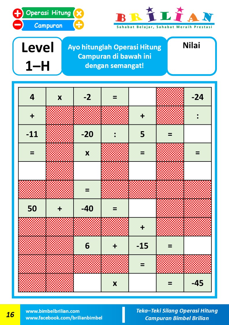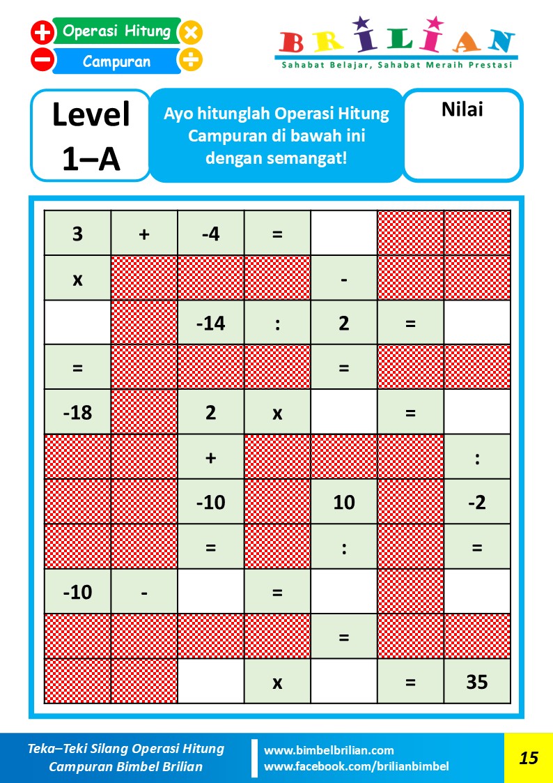 - Teka-Teki Silang Operasi Hitung Campuran Bilangan Bulat Positif dan Negatif