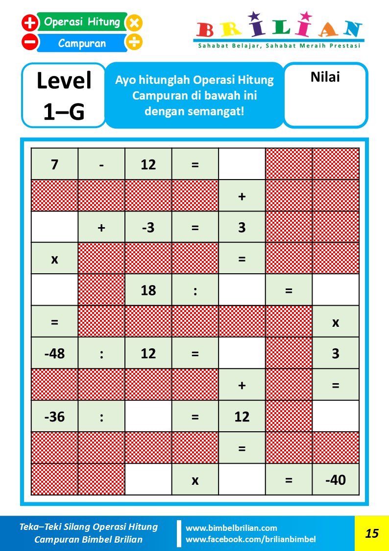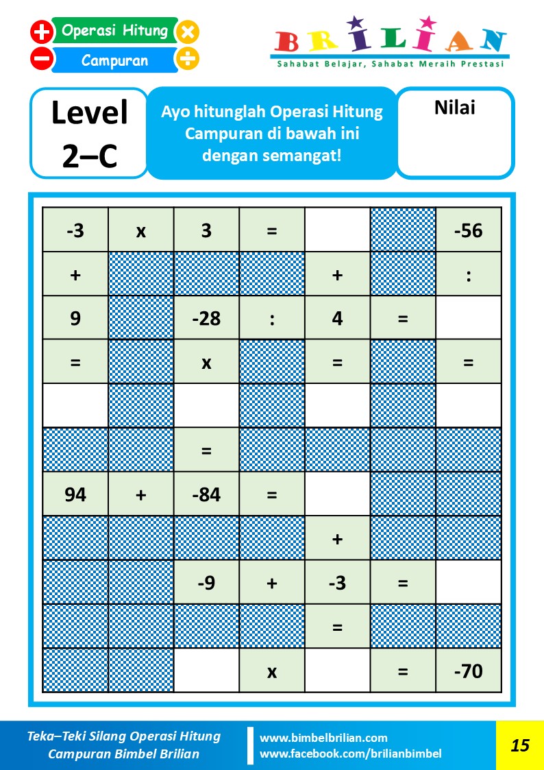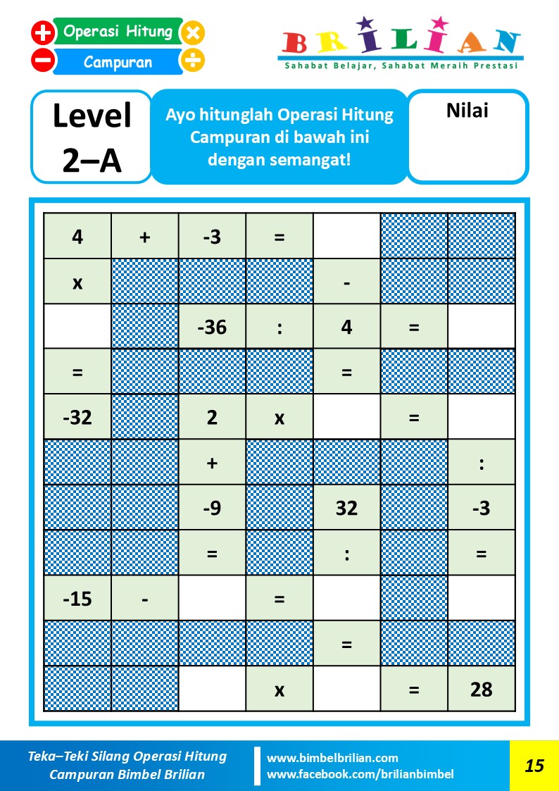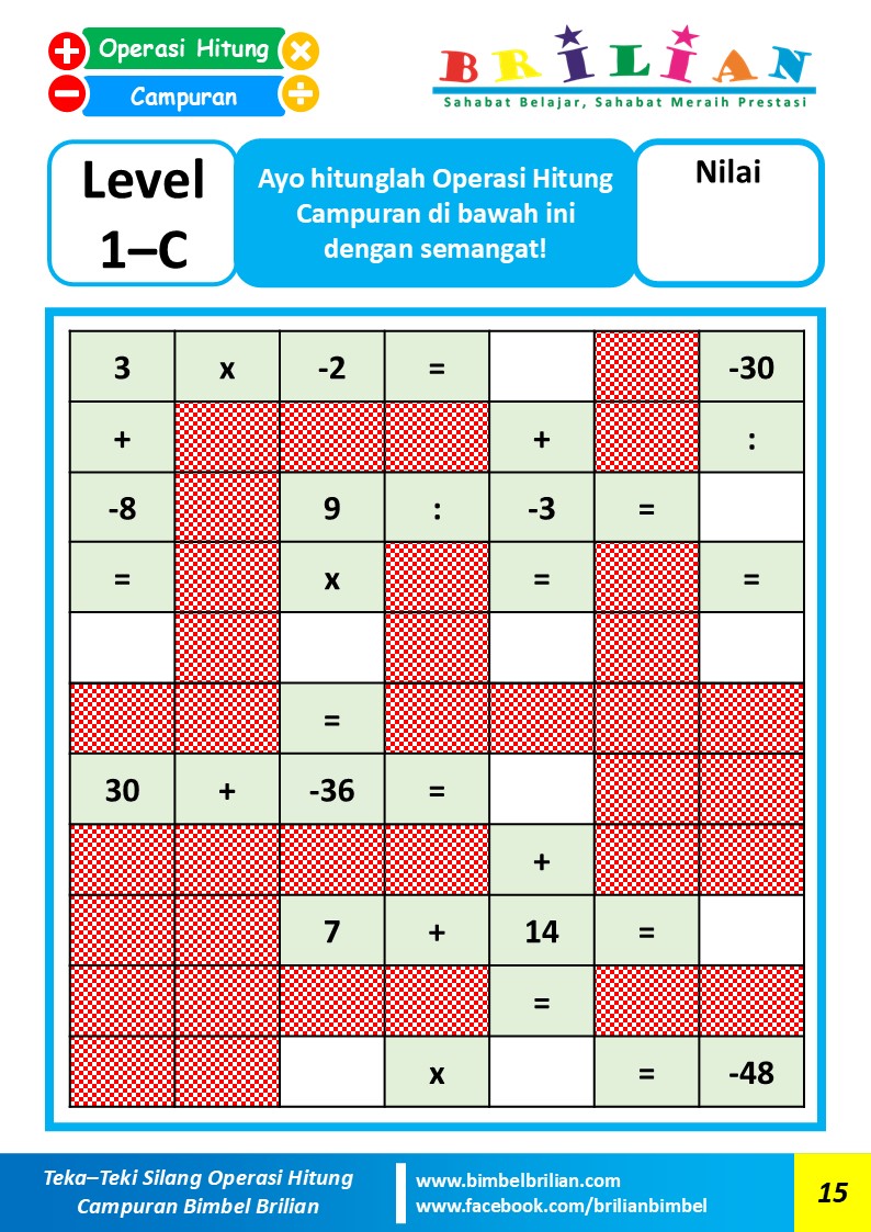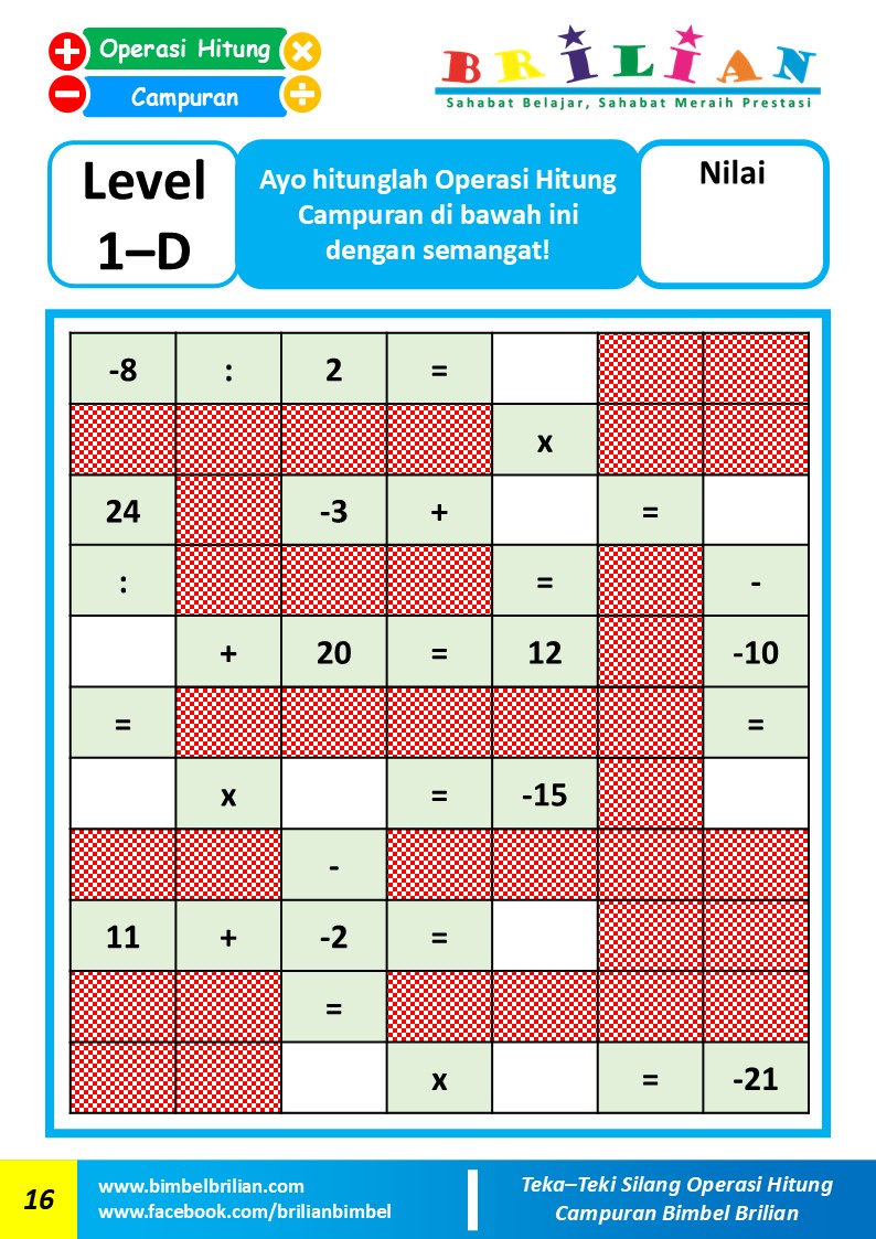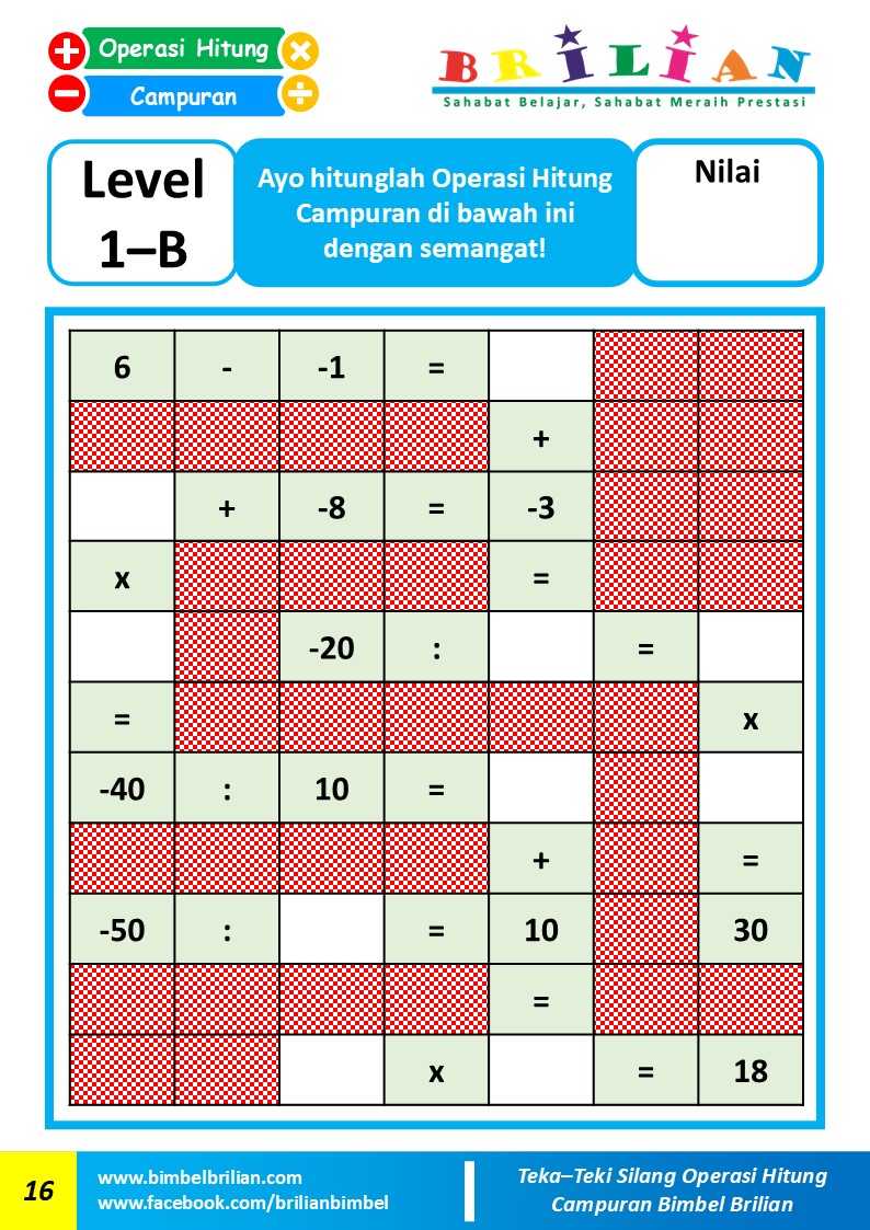 - Teka-Teki Silang Operasi Hitung Campuran Bilangan Bulat Positif dan Negatif