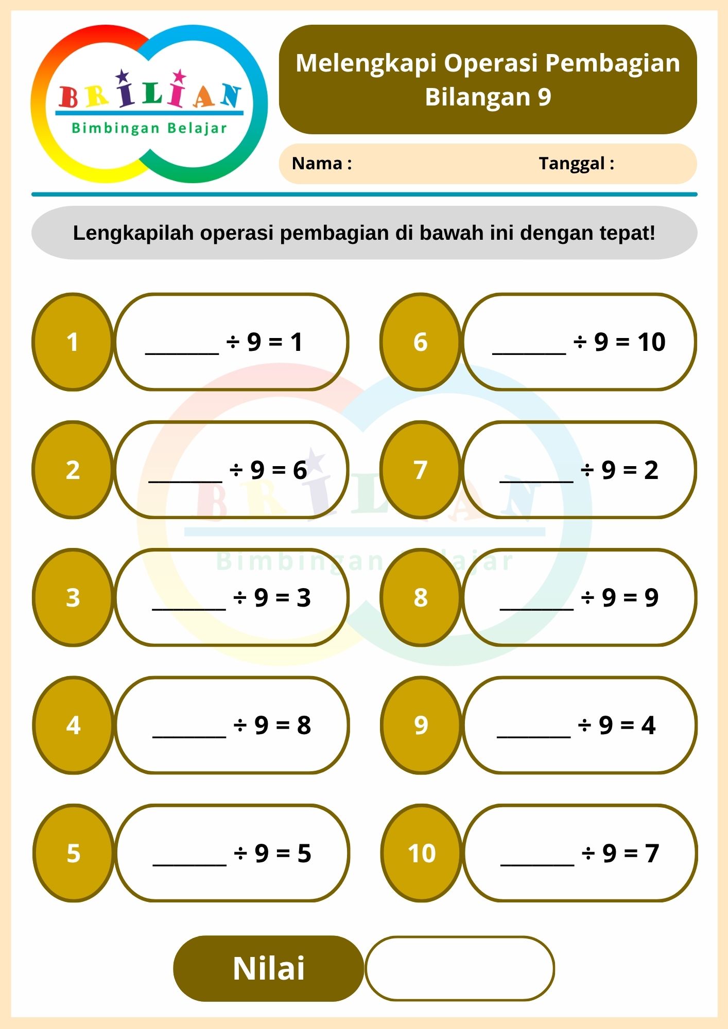 Keterangan = Pembagian Bilangan 9 (4 Lembar)